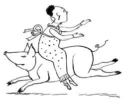 An old woman was sweeping her house, and she found a little crooked sixpence. “What,” she said, “shall I do with this little sixpence? I will go to market, and buy a little pig.” As she was coming home, she came to a stile: but the piggy wouldn’t go over the stile. She went a little further, and she met a dog. So she said to the dog: “Dog! bite pig; piggy won’t go over the stile; and I shan’t get home to-night.” But the dog wouldn’t. She went a little further, and she met a stick. So she said:
