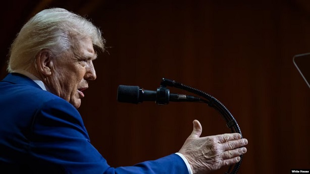 U.S. President Donald Trump promised to seek accountability for those who pursued legal cases against him when he was out of office, speaking Friday at the Justice Department.